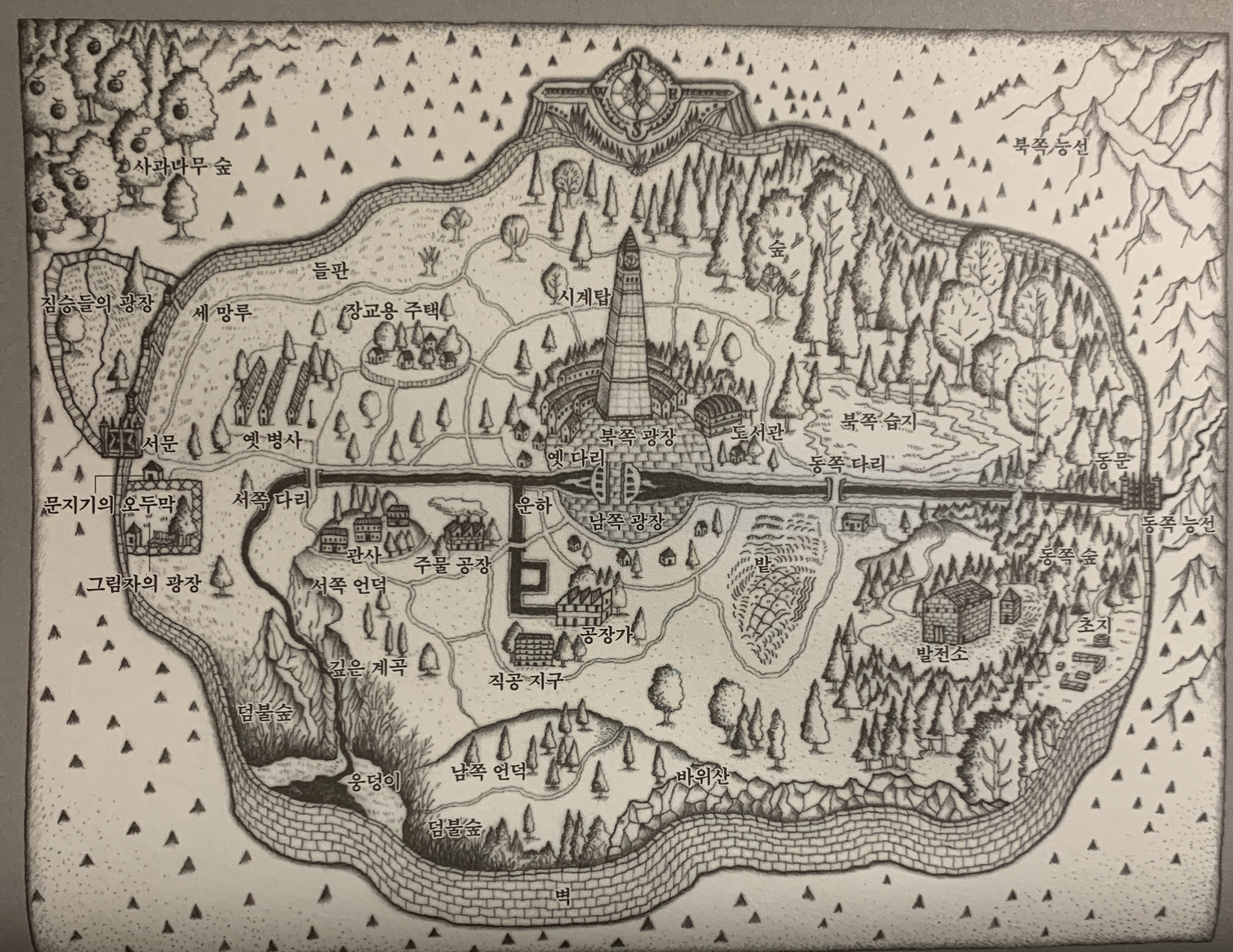 "의식 속에는 본인은 감지하지 못하는 핵 같은 게 있어. 내 경우는 그게 한 마을이야. 그 마을에는 강이 하나 흐르고, 주위는 높은 벽돌담이 둘러싸고 있어. 마을에 사는 사람들은 벽 밖으로 나갈 수 없어. 나갈 수 있는 건 일각수뿐이지. 일각수는 사람들의 자아와 에고를 기름종이처럼 빨아들여서 마을 밖으로 옮겨 가. 그래서 마을에는 자아도 에고도 없어. 나는 그런 마을에 살고 있어. - 그런 내용이야. 실제로 내 눈으로 본 게 아니라서 그 이상은 잘 모르겠어."